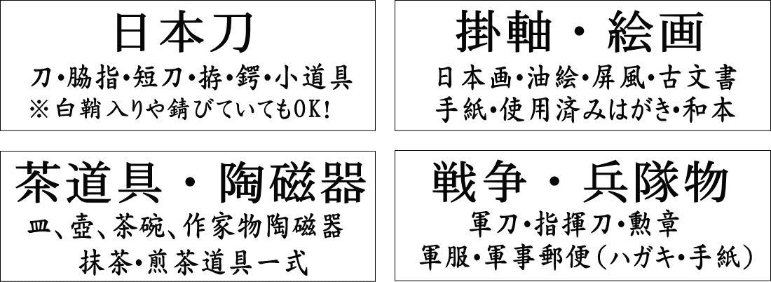 九州(福岡・長崎・佐賀・大分・熊本・宮崎・鹿児島)の骨董、古美術・刀剣の古い物買取専門店です。